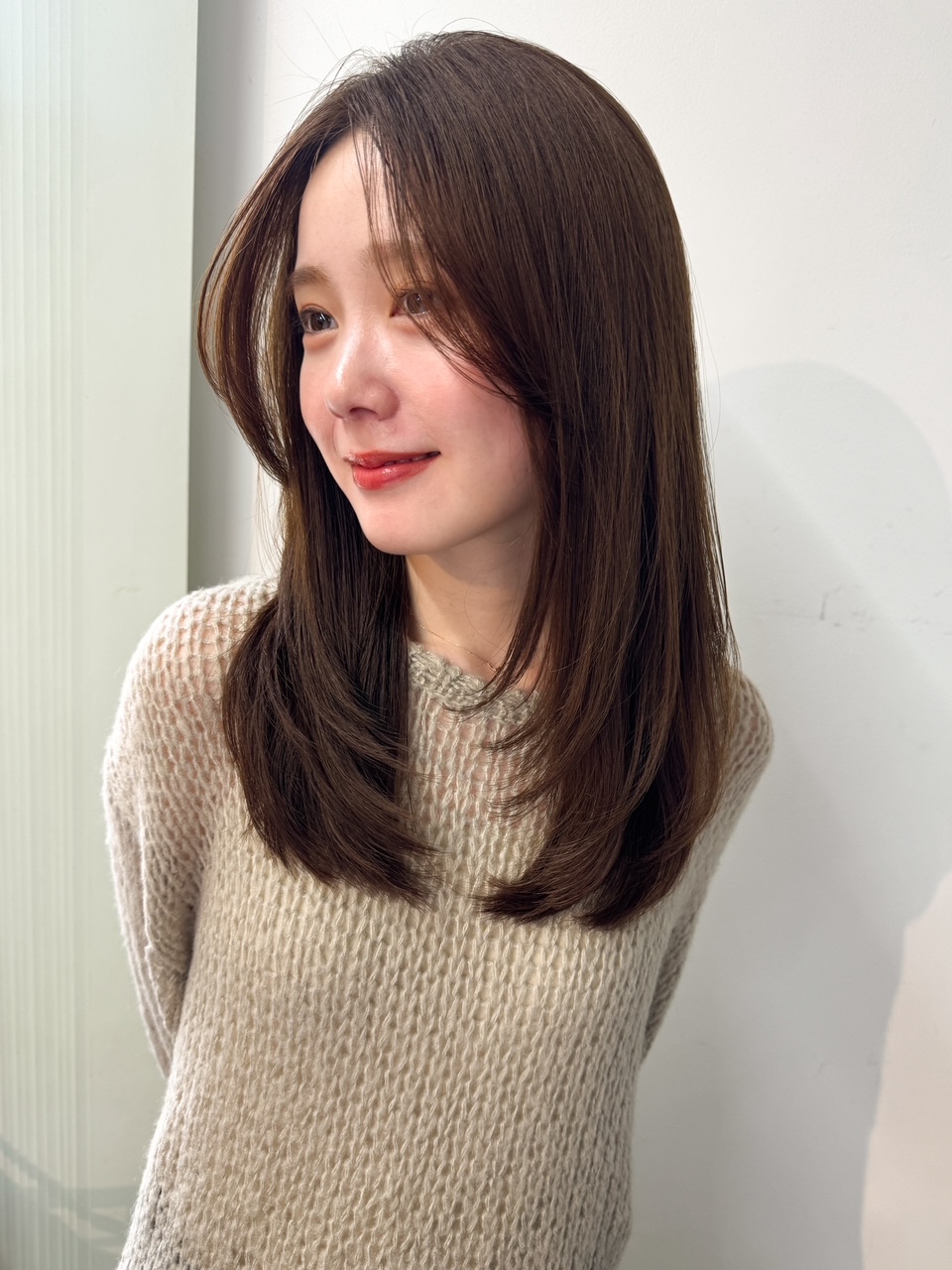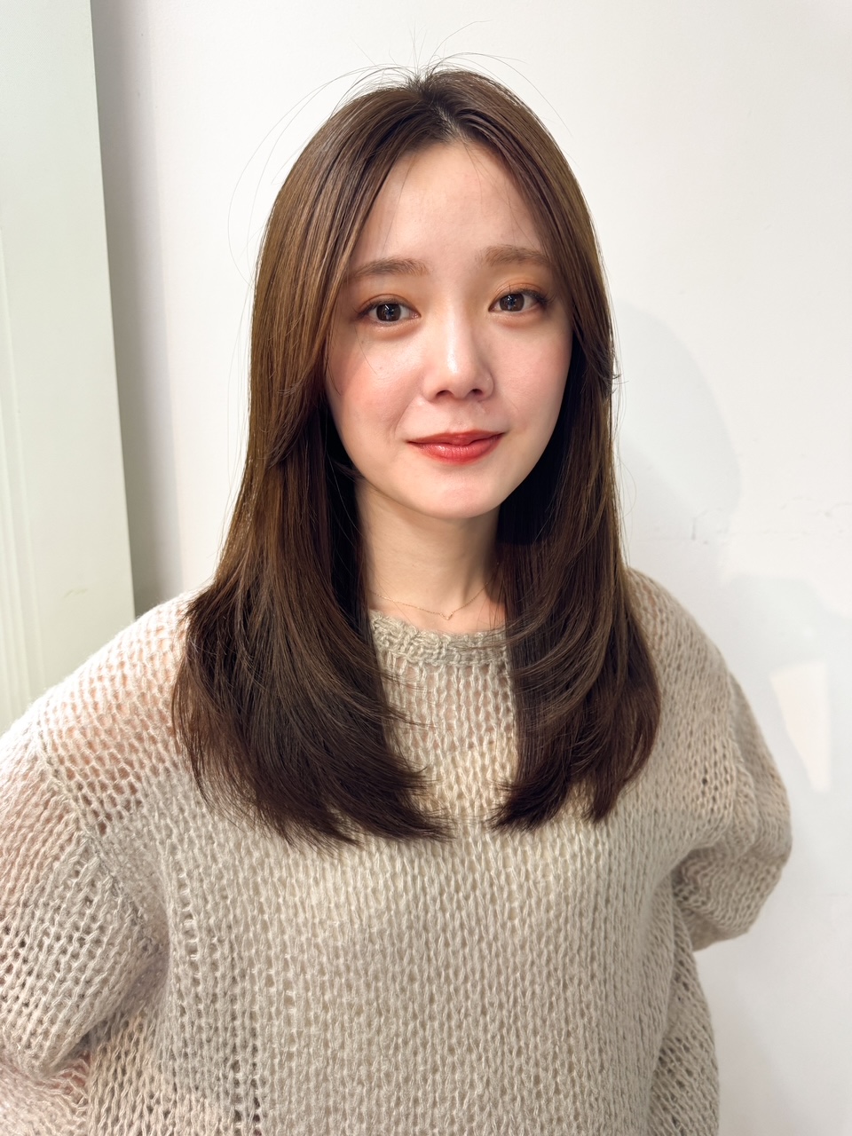鎖骨あたりの高さまで入れたレイヤーで軽くて動きが出るトレンドデザイン。